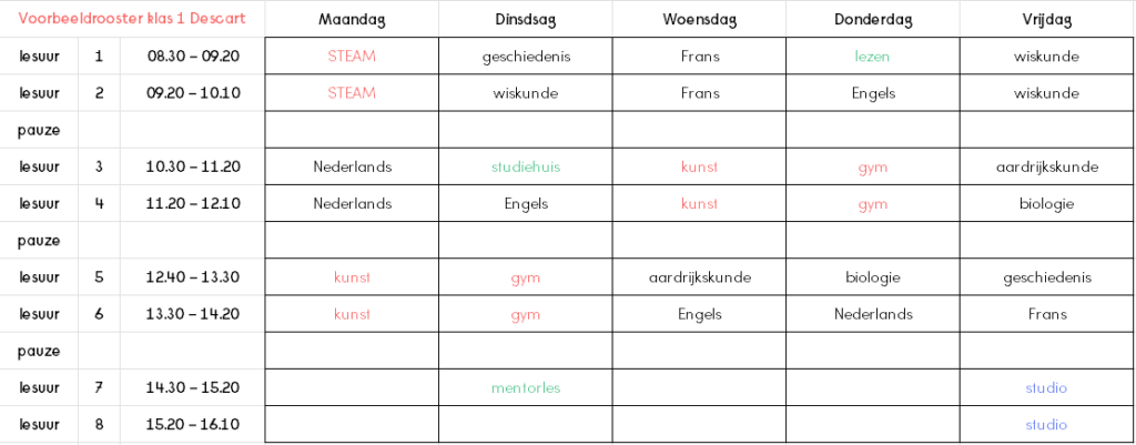 Ook krijg je met je klas ‘het studiehuis’. Dan leer je bijvoorbeeld meer over plannen en hoe je het beste kan leren.